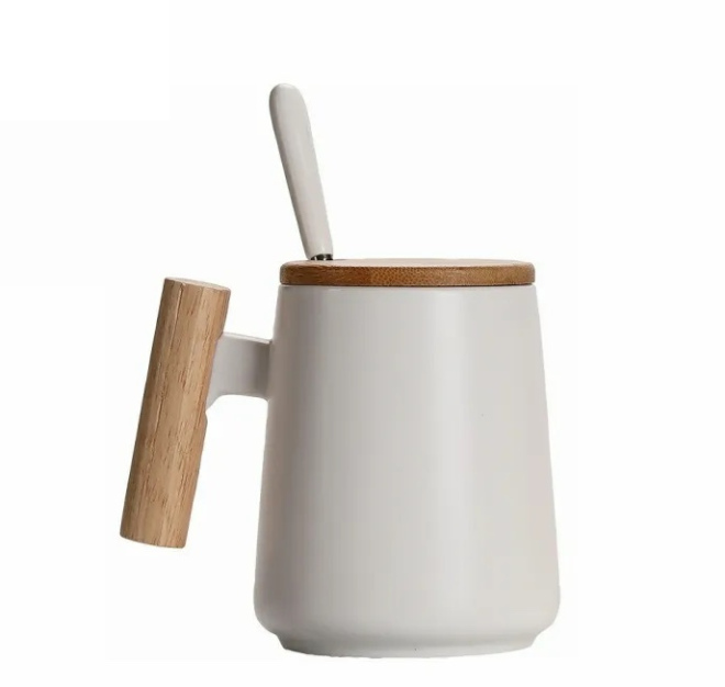 Custom stylist ceramic mug with wooden handle