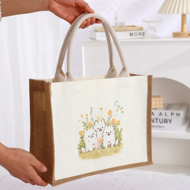 Elegrant jute tote bag with custom heat transfer logo